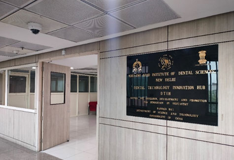 Maulana Azad Institute of Dental Sciences (MAIDS), being a recognized tertiary “Centre of excellence” for providing oral health care services under Govt of NCT of Delhi, has received funding from the DST and ICMR, to set up a center dedicated to Dental Technology Innovations and conversions of indigenous lab scale technology systems/prototype and replications in identified new & emerging areas of Dentistry. DTIH is an initiative bring the knowledge, skill, expertise and proficiency of researchers, industry as well as the technical teams on one platform to promote successful collaboration.