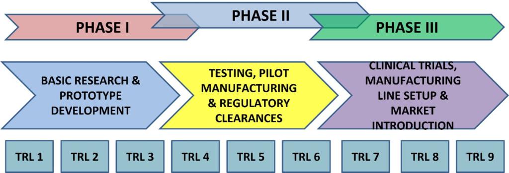 PHASE II – Testing at DTIH’s Comprehensive Lab Facility, Pilot Manufacturing in association with existing facilities like ICMR funded Centers of Excellence at Engineering Institutes, Providing assistance for regulatory clearances by trained manpower at DTIH.
