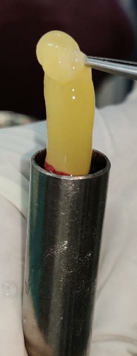 Platelet rich fibrin is prepared by taking 10ml of patient’s intravenous blood from median cubital vein in a vaccutainer. Vaccutainer with patients’ blood will be centrifuged at 3000 rpm for 10 minutes by using centrifugation machine.After flap reflection adequate defect debridement and root planning is performed using ultrasonic instrumentation and area-specific curettes. PRF with the bone graft are filled into the IBD.