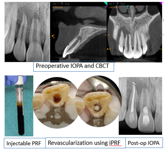 Modern medicine aims to work on two principles viz. prevention and regeneration and endodontics is no exception. In 2007, the Journal of Endodontics published a “call to action” article urging scientists, endodontic professionals, and funding agencies to hasten the development of research in this field of regenerative endodontics. Ever since, this field has received enormous attention from researchers and clinicians. Existing literature shows that both mineral trioxide aggregate (MTA) apical plug (MAP) and regenerative endodontic treatment (RET) have shown acceptable clinical outcomes in immature teeth affected by pulp and the periapical diseases. However, high quality studies directly comparing the outcomes of MAP and RET are scarce. Hence, this Randomized clinical trial aims to compare the clinical and radiographic outcome (using CBCT) of apexification and RET using injectable PRF.