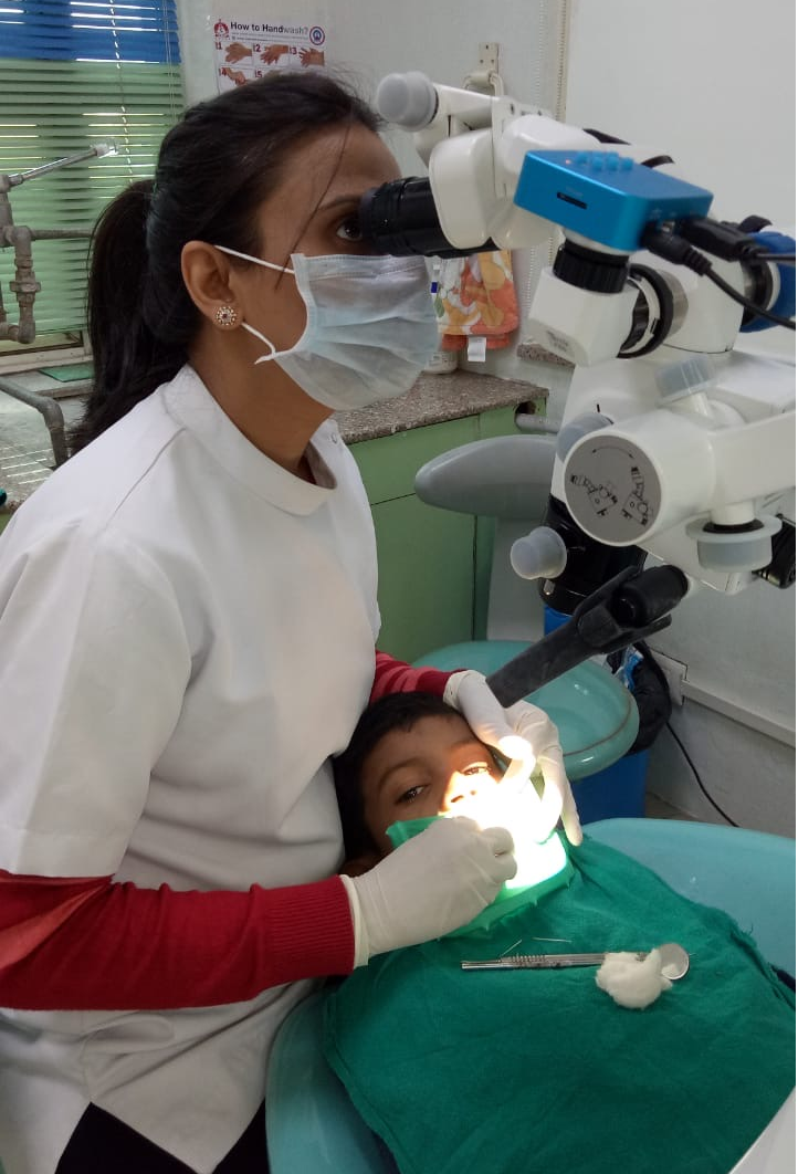 Despite of the recent advances on the preventive front, worldwide prevalence of dental caries is on a rise and seems unlikely to improve in near future causing pulpal involvement in young teeth or their premature loss. Pulp therapy in primary teeth is challenging as it involves thorough cleaning, shaping and debridement of bizarre shaped and tortuous canals with/ without physiologic resorption. Moreover, presence of accessory canal in interradicular region may increase permeability to microbial toxins consequently causing chronic non healing lesions. Thus, it becomes necessary for the dental clinicians to understand the morphology of teeth affected and its adjoining periodontal tissues performing the most appropriate dental treatment in young children. A variety of techniques have been used to study root canal morphology including radiographic examination, root sectioning and staining and clearing techniques. Most of the techniques used to observe the morphology of root canals either alter or destroy the details of the tooth morphology. An important aid for locating root canals is the dental-operating microscope (DOM) which brings minute details into clear view and helps distinguish microstructures that are not visible to the naked eye. It allows the operator to understand the subtleties of pulp chamber anatomy visualize the pulpal floor and locate root canal orifice. Furthermore, the microscope enhances the operator's ability to selectively remove dentine with great precision, locating and negotiating canals, minimizing the procedural error. Thus, it is proposed to assess the impact of Dental Operating Microscope on success of endodontic therapy on primary molars.