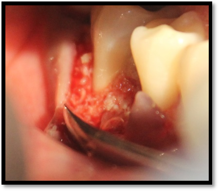 A prospective pre and post interventional comparative study involving patients with a clinical diagnosis of moderate-to-severe chronic periodontitis is being carried out in the department of periodontitis. Inclusion criteria included presence of a 3-walled infrabony defect (IBD) ≥ 3 mm deep in which depth is measured radiographically from the alveolar crest to the base of defect on an intraoral radio-visiographical (RVG) periapical radiograph and the architecture of the 3-walled IBD is confirmed upon surgical exposure of the defect.